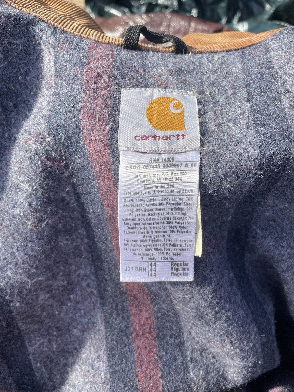 Carhartt Men’s J01 BRN Vintage Detroit Jacket Size 44 Fits Medium-Large